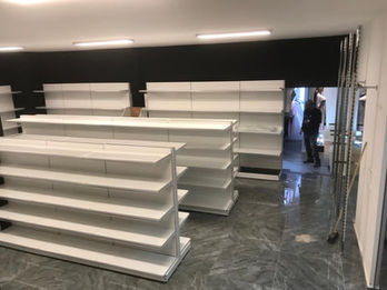 - Structural design + 3D visualization- Supermarket shelves- Wooden shelves- Cash register counter- Toilet shelving
